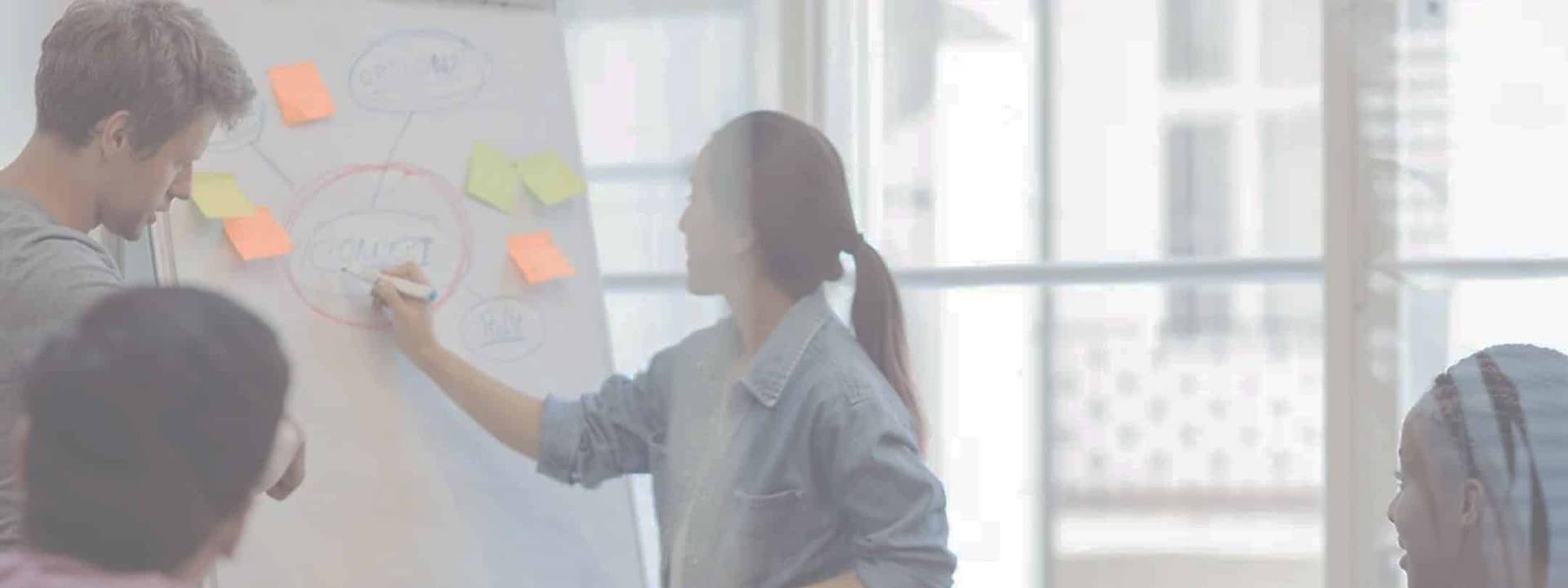 Brainstorming en équipe sur les formations certifiées avec un tableau blanc.